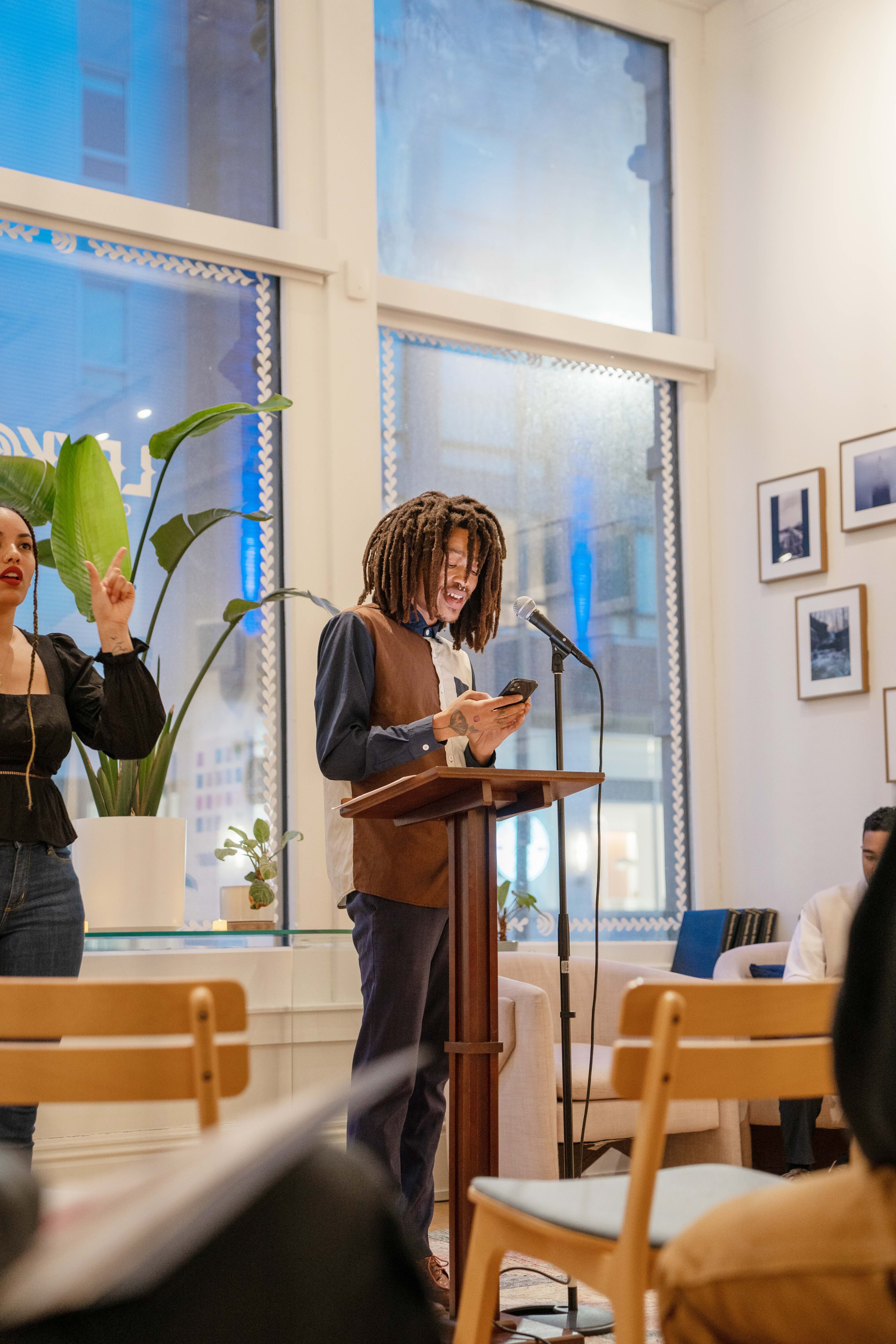 Join us for a night of workshopping, open-mic readings, and hear former residents' writing at Visible Voice bookstore's gorgeous new location!